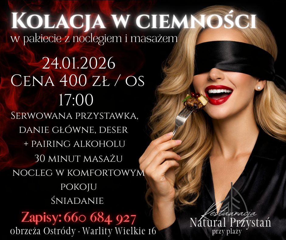 Pakiet z kolacją w ciemności to niecodzienne doświadczenie, który pozwala odkryć smaki w zupełnie nowy sposób. W kameralnej atmosferze, bez udziału wzroku, skupisz się na aromatach i intensywności doznań kulinarnych. To idealna propozycja dla tych, którzy szukają oryginalnego wypoczynku i chcą zaskoczyć bliską osobę lub przeżyć coś naprawdę wyjątkowego.